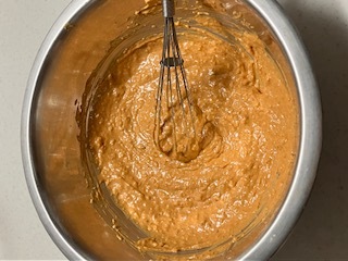 ①赤いマサラを作る。ボウルに☆の材料を全て入れ、ダマにならないようホイッパーでしっかり混ぜる。