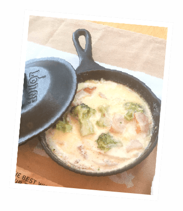 - 2. スキレットに1と*を入れ弱火で10分程火にかけ煮立ってきたら、塩・胡椒で味をととのえる。