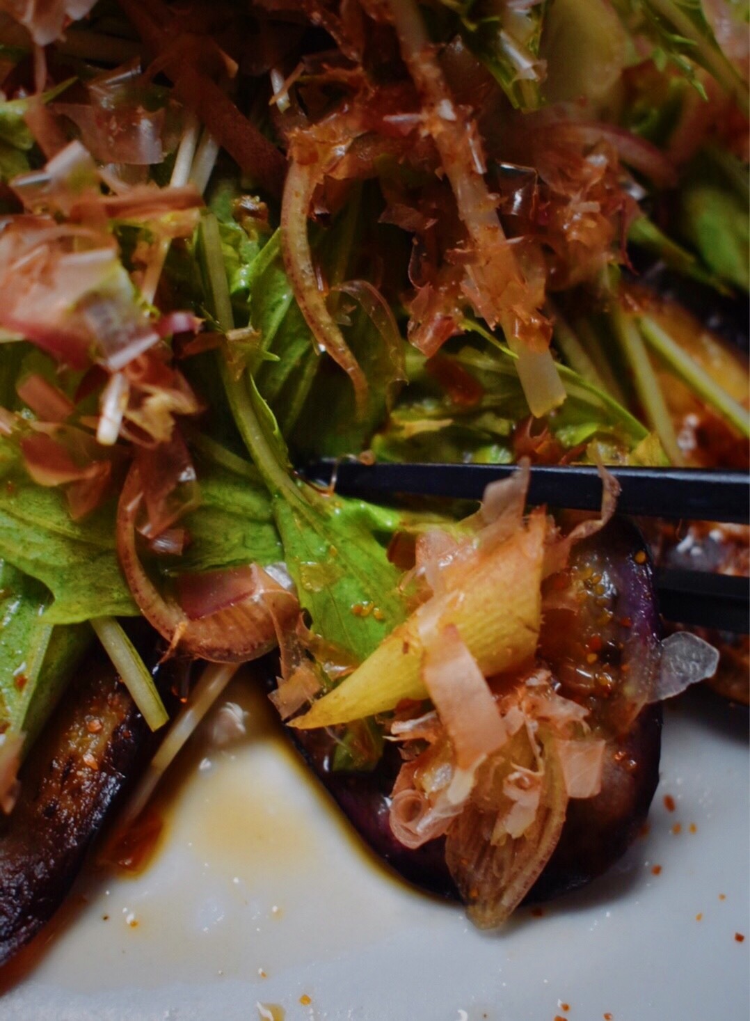 茄子を使ったサラダレシピです。*ˆˆ*ポン酢を回しがけて、水菜や大葉、ミョウガを茄子で挟んで食べます!お箸が止まりません(笑)とても簡単なので是非!参考になれば嬉しいです。