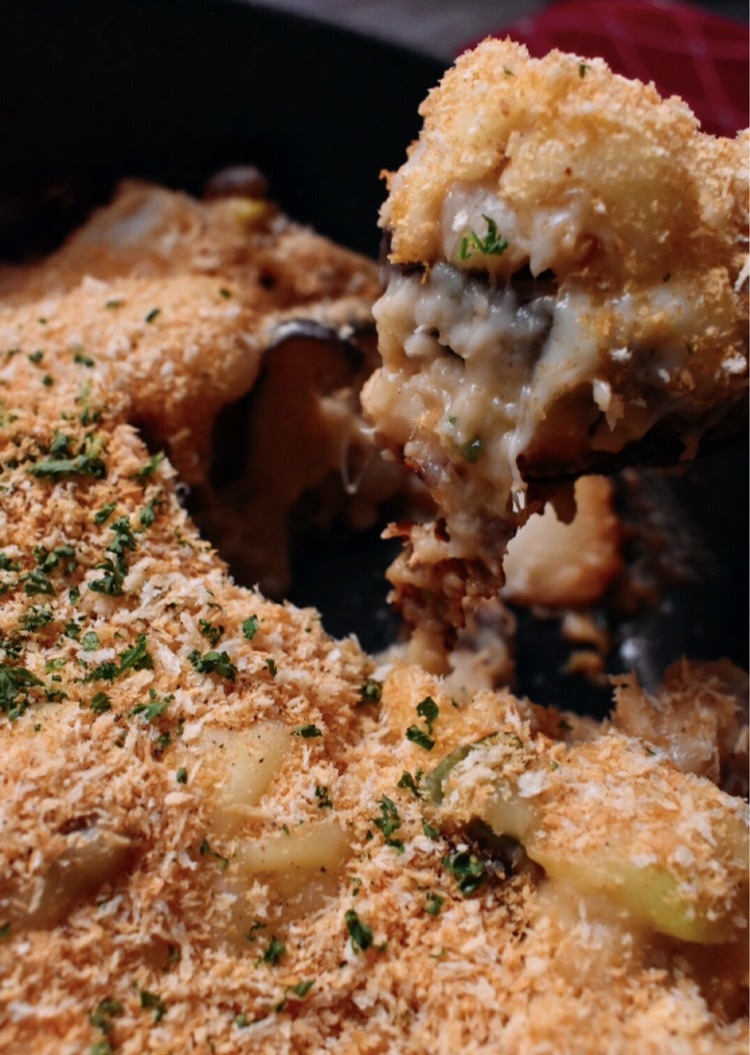 今が旬の里芋を使った濃厚クリーミーグラタンです!今回は乾煎りしたパン粉を使用し、オーブンやトースターを使わずに調理します♪(もちろん、使用しても◎)ご家庭だと大きめのフライパン、大勢が集まるホームパーティーだとホットプレートを使っても良いかもしれませんね〜!*ˆˆ*✨