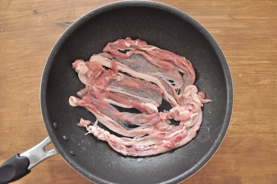 - 2に蓋をして、中火で表面が白くなるまで2〜3分間熱する。