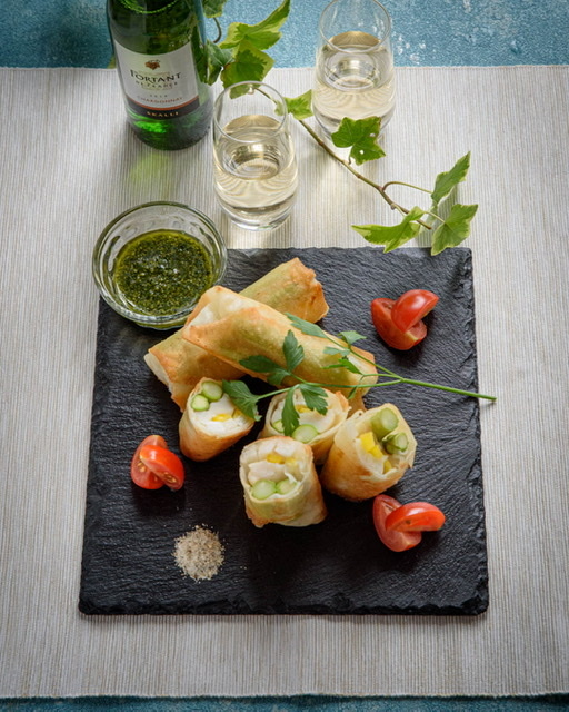 - 器に春巻きを盛り、塩・バジルソースを添える。