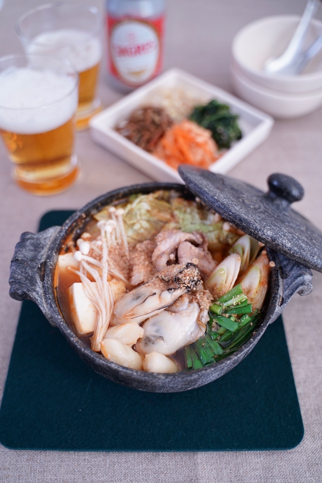 キムチ鍋にしてボリューム満点に、お酒にも合うようにしています。