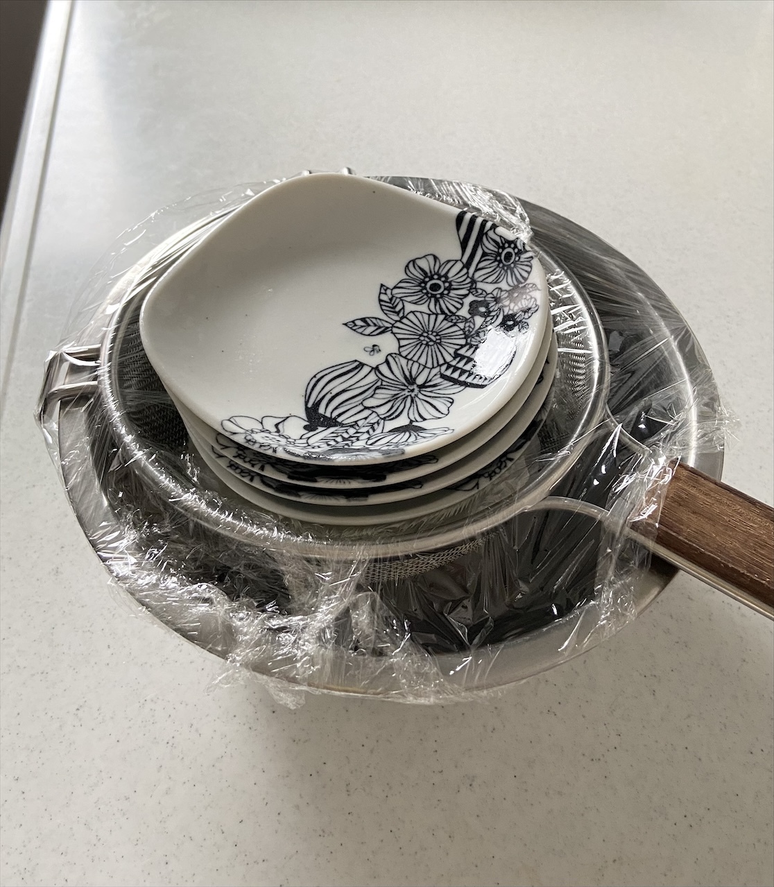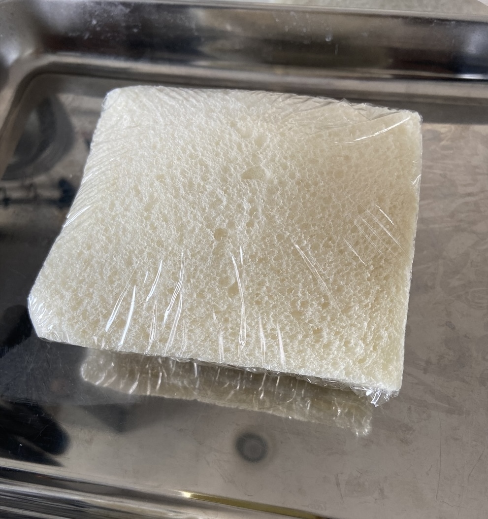 さらに上に同量のクリームをのせパンで挟みラップで包んでひっくり返しておく。