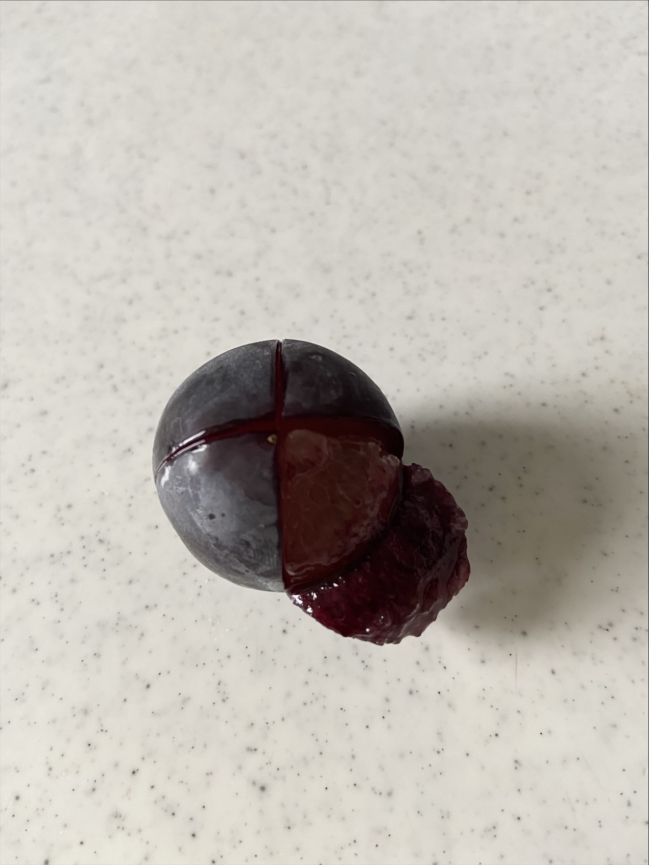 無花果と巨峰は皮を剥いてキッチンペーパーの上にのせておく。※巨峰は頭部分に十字に切り込みを入れると剥きやすいです