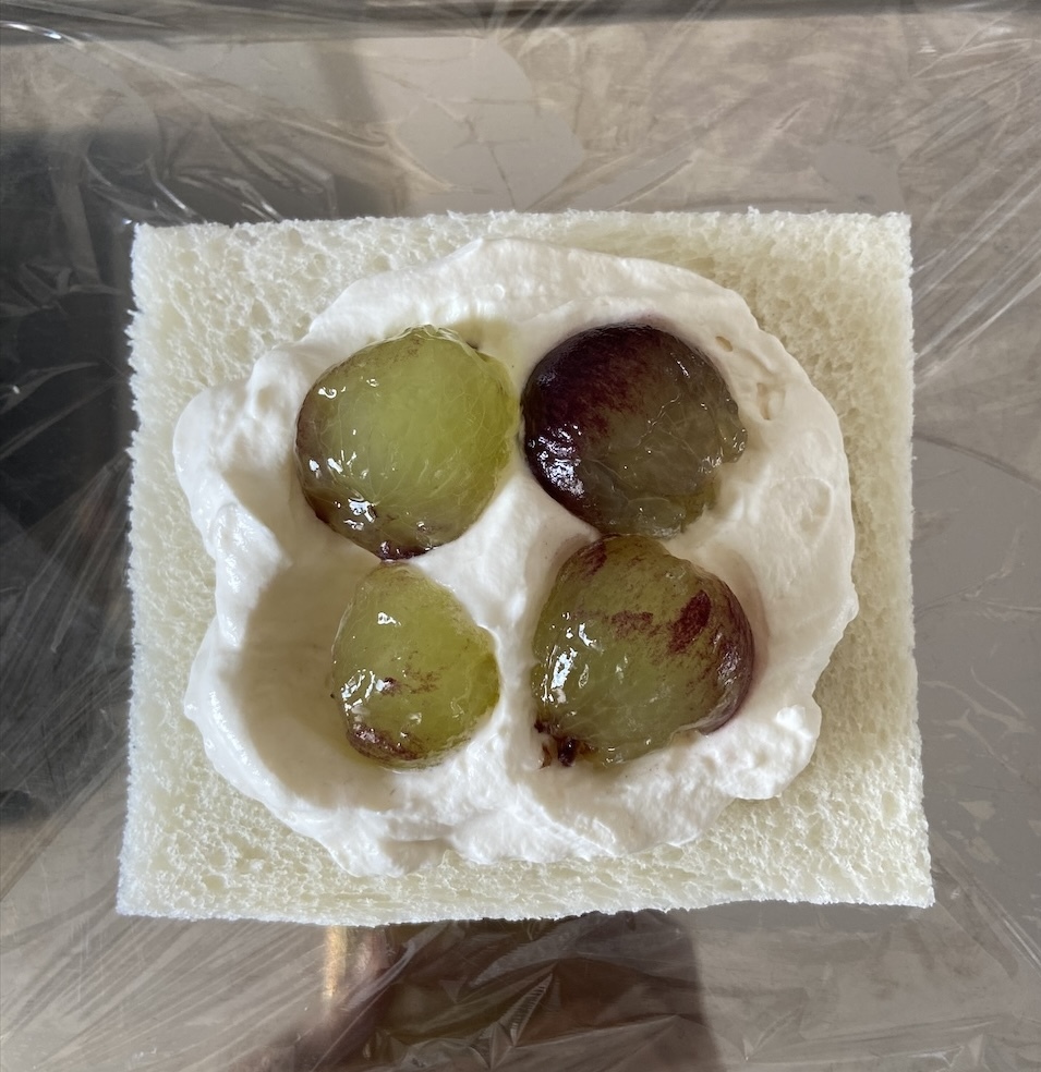 巨峰も同様にサンドしてラップで包み、冷蔵庫で30分程冷やして馴染ませる。