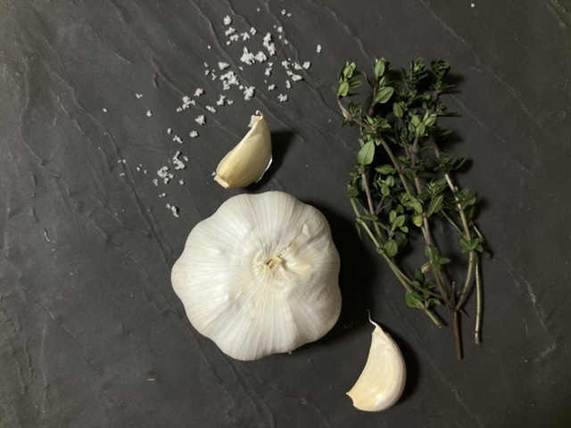 - フライパンにオリーブオイル、にんにくを入れ火にかけ、香りを出す。