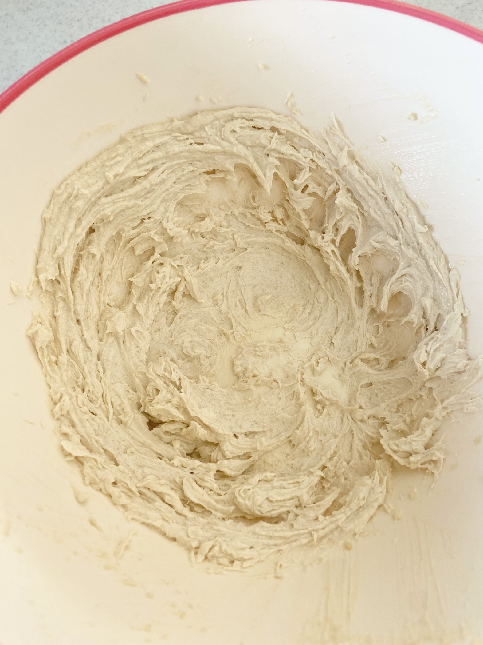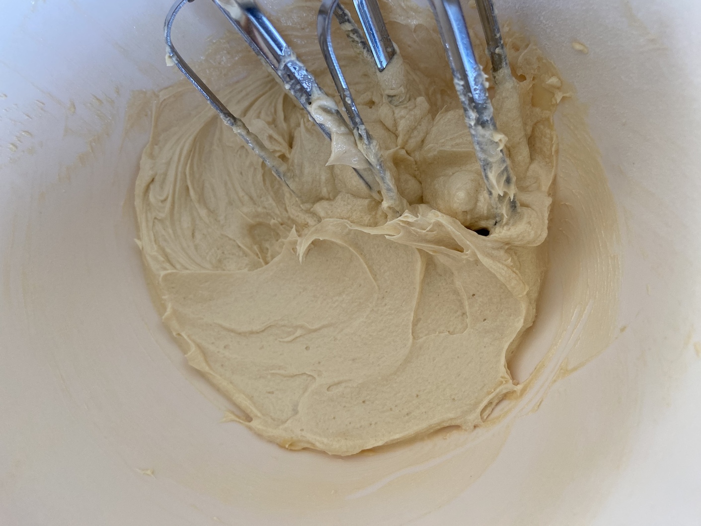 バター、きび砂糖をボウルに入れハンドミキサーで白っぽくなるまで1分程立て空気を含ませる