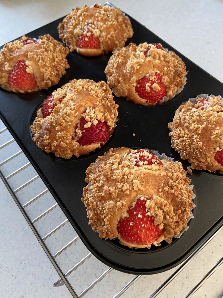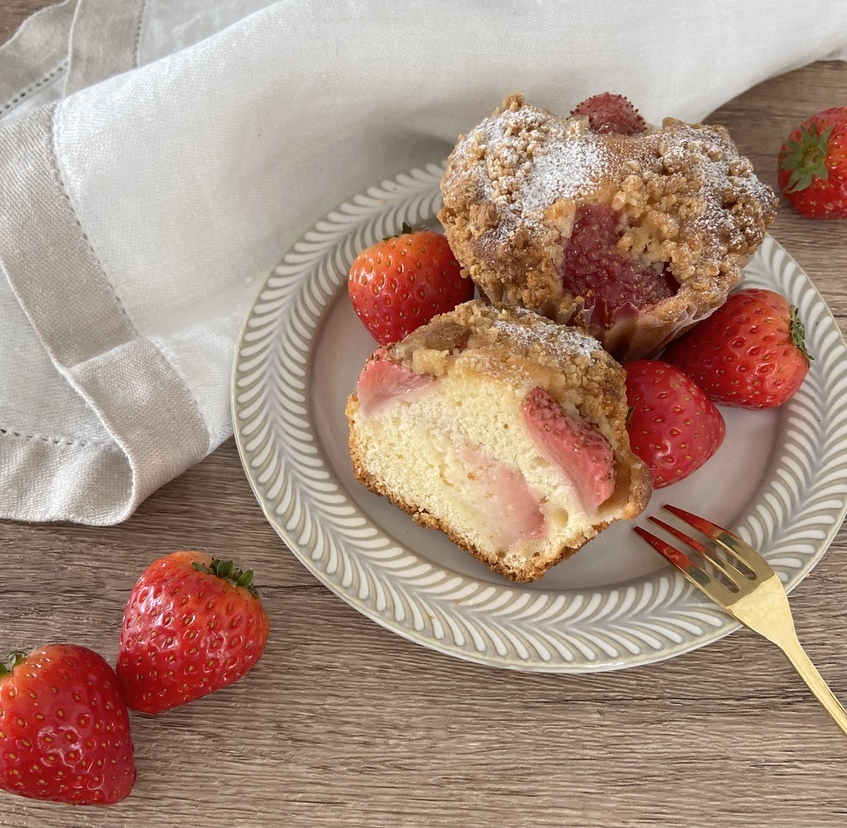 美味しい苺が安く手に入る季節になったので、苺たっぷりの贅沢なマフィンを考えました。