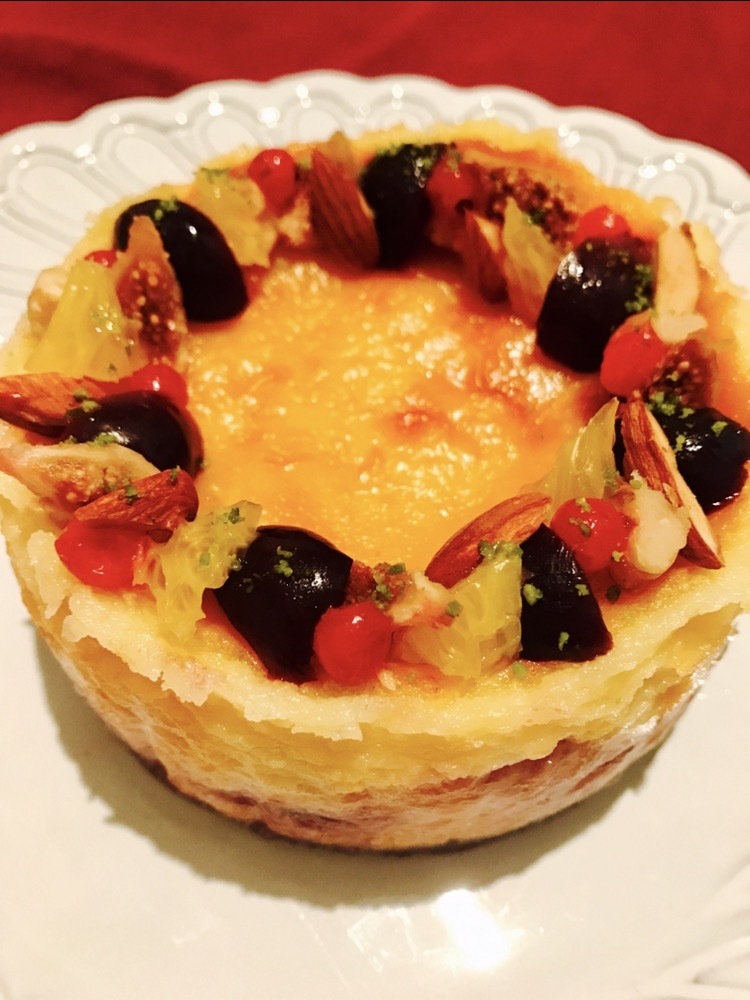 スタイリングのみ掲載させていただきます。 ダークチェリーをふんだんに入れた、チーズケーキです。 チェリーにカルダモンを、ちょっぴり加えています。