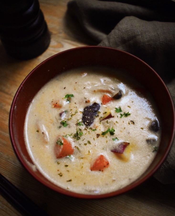 ⭐️今回はソーセージを使用しましたが、鶏肉やベーコンでも◎。お野菜は他にもブロッコリー、じゃが芋、里芋、カブ、大根、インゲン…etc 私の場合は、その時家にあるお野菜をふんだんに使います!*ˆˆ*⭐️「すりごま」を入れることでコクが生まれ、深い味わいになります。⭐️お味噌を入れる際に、一旦火を止めてから味噌を入れる理由は、グツグツした状態で味噌を溶くと、味噌の風味が落ち、味が変わってしまうからです!⭐️このスープは栄養価の高い食材をふんだんに使用しています!(野菜:ビタミン群やカリウムなどの健康な体を作るのに必要な栄養素がたくさん含まれている。脂質が少なく、生活習慣病の予防に繋がる。豆乳:女性が綺麗で健康的な生活をサポートする成分が多く含まれている。味噌:味噌は大豆と麹、塩を原料とし、たんぱく質、炭水化物、ビタミン、ミネラルを含み、その効果から「医者いらず」と昔から伝えられている。ごま:生活習慣病や老化防止に効果がある。)