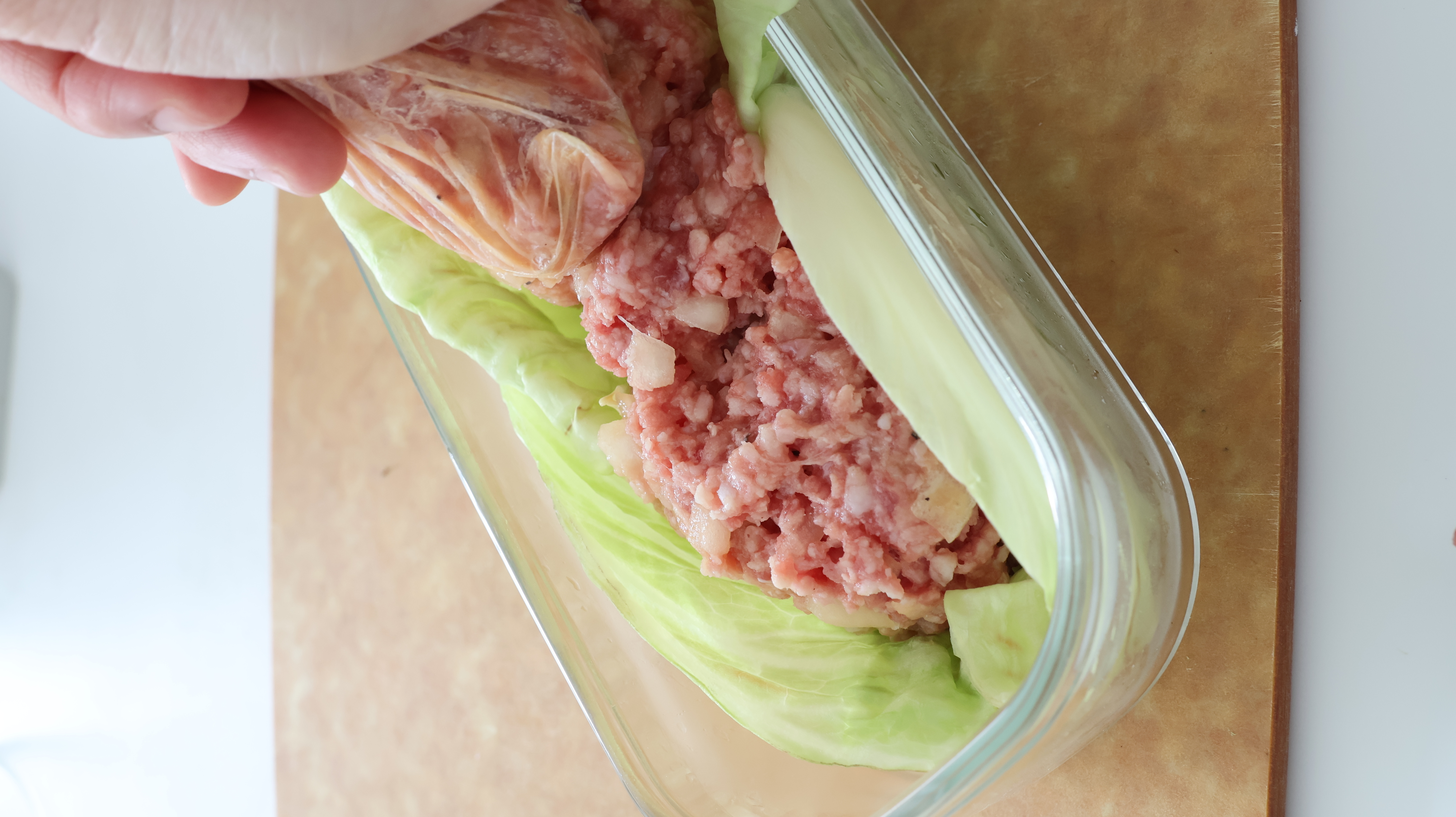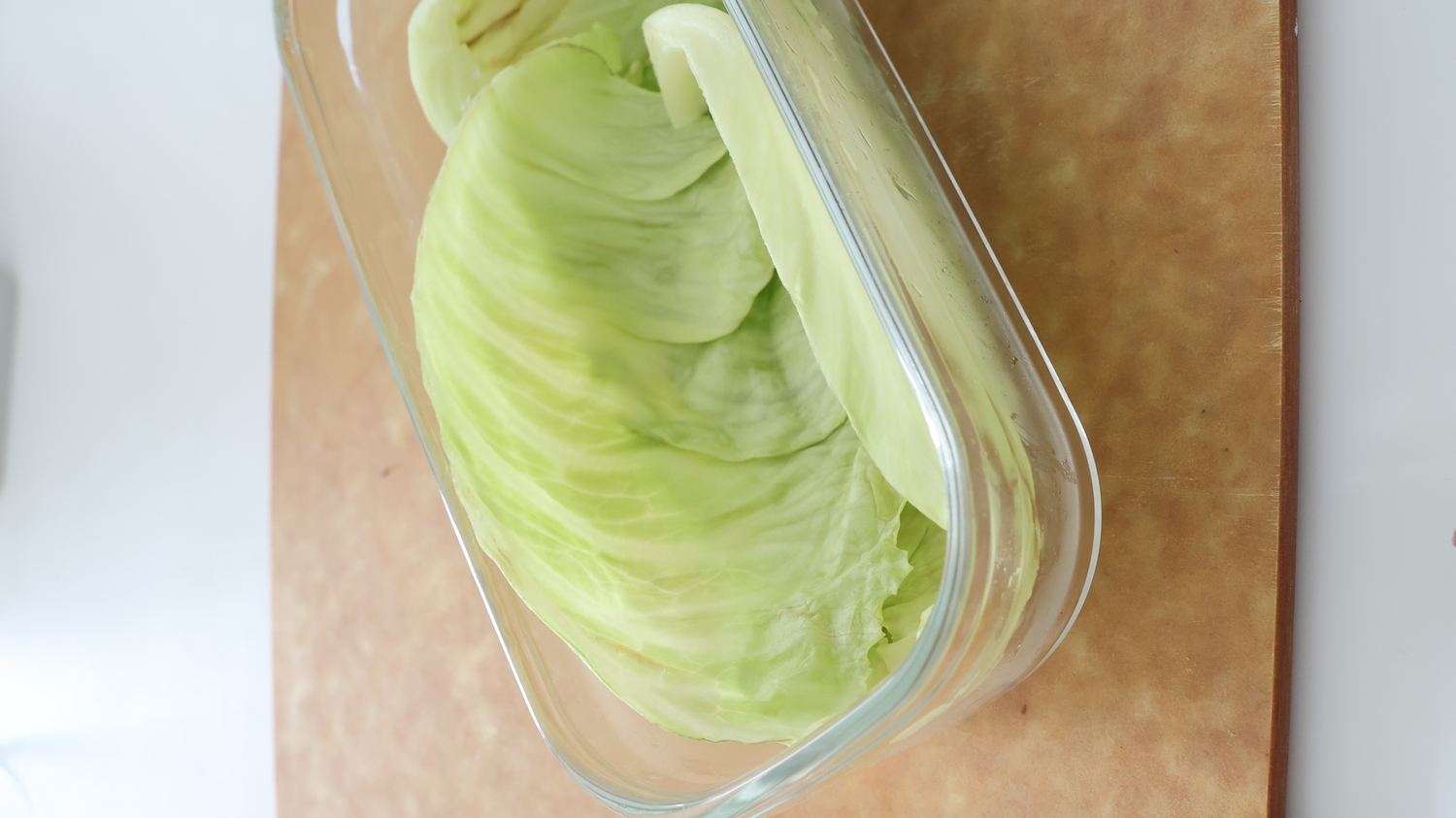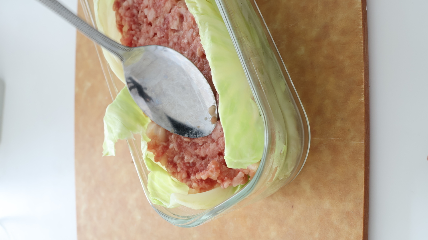 耐熱容器にレンジで加熱したキャベツを敷く