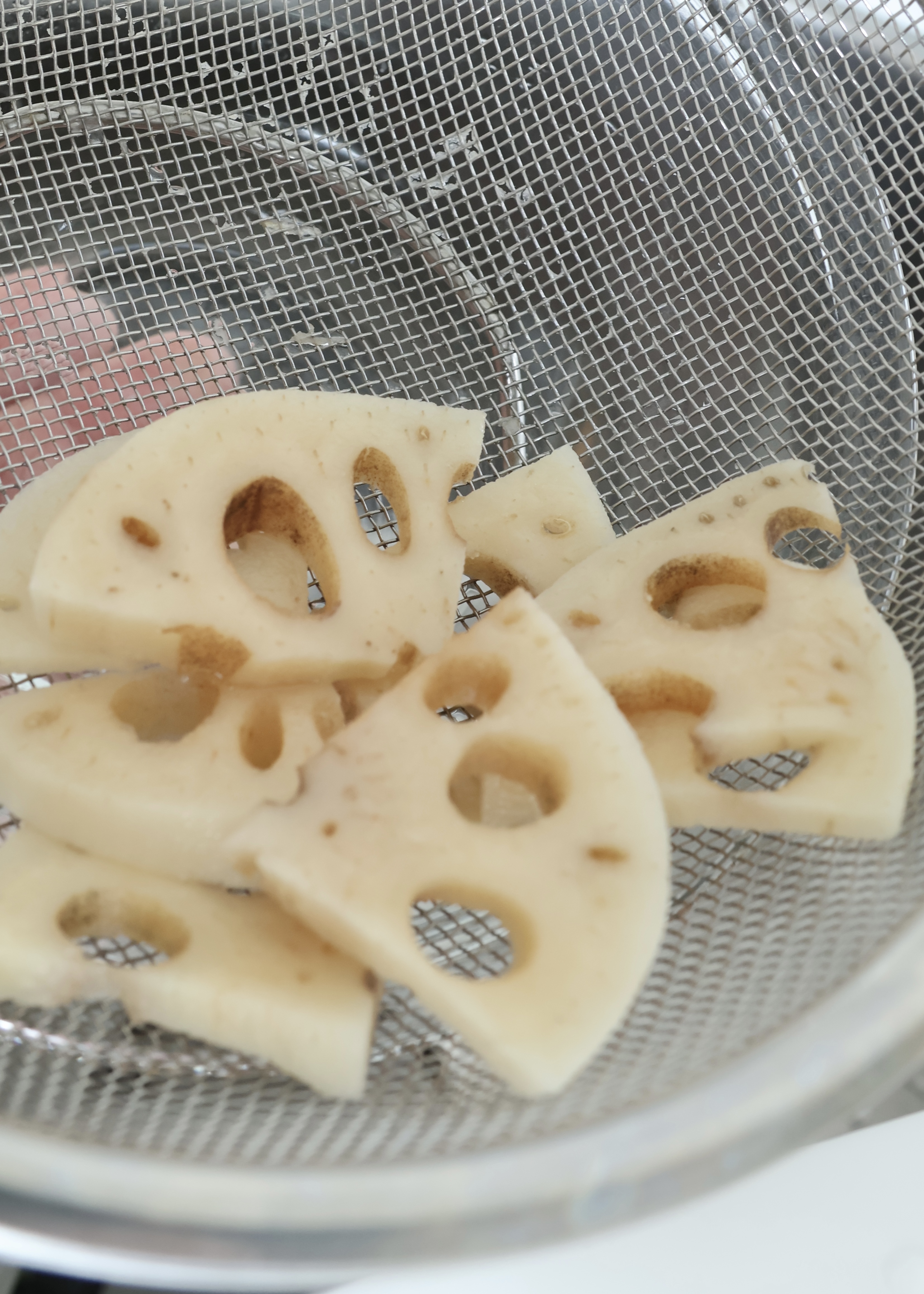 れんこんは食物繊維が多いので満腹感を得られやすく、ビタミンCとタンニンが含まれ美白効果も。