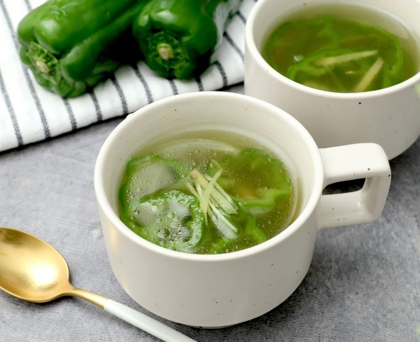 ピーマンのほろ苦さと生姜の香りが絶妙にマッチ。身体の内側からポカポカ温まり、梅雨時の冷えや不調にも◎栄養たっぷりのやさしいスープ。