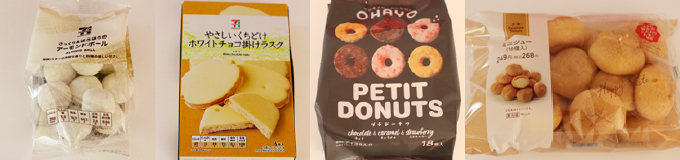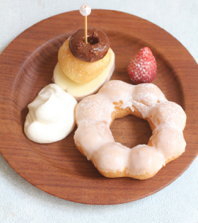付け合わせ的な菓子類。今回は左からアーモンドボール、ホワイトチョコのラスク、プチドーナツ、シュークリームをチョイス。
