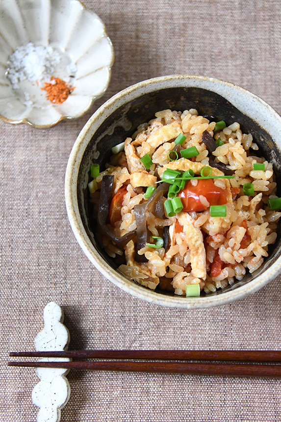 プチトマトときくらげの炊き込みご飯