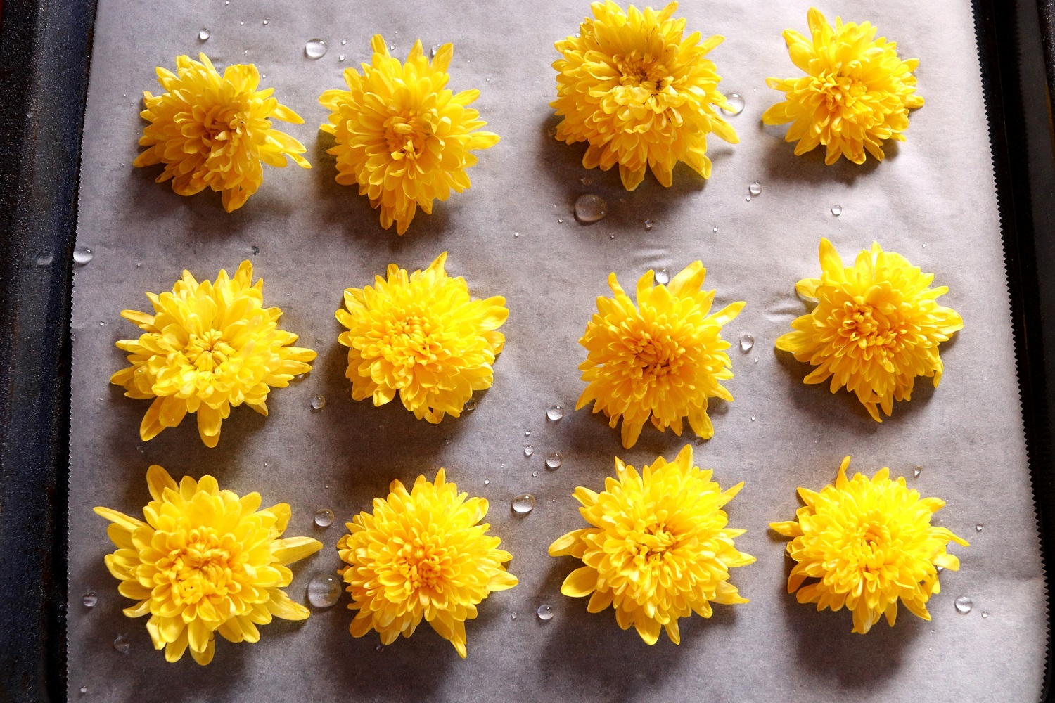 【下準備】菊花を洗う。オーブンの予熱を入れる。(120℃)