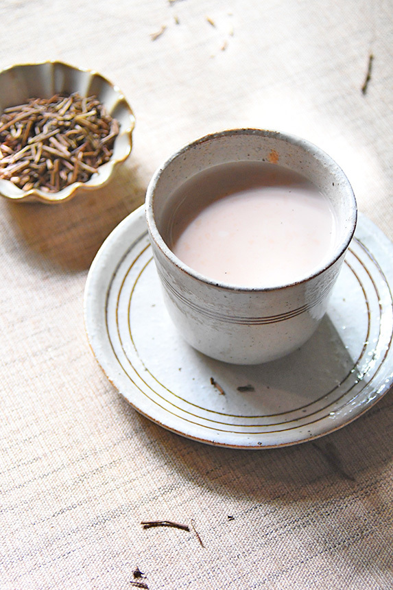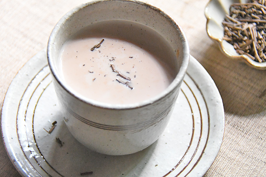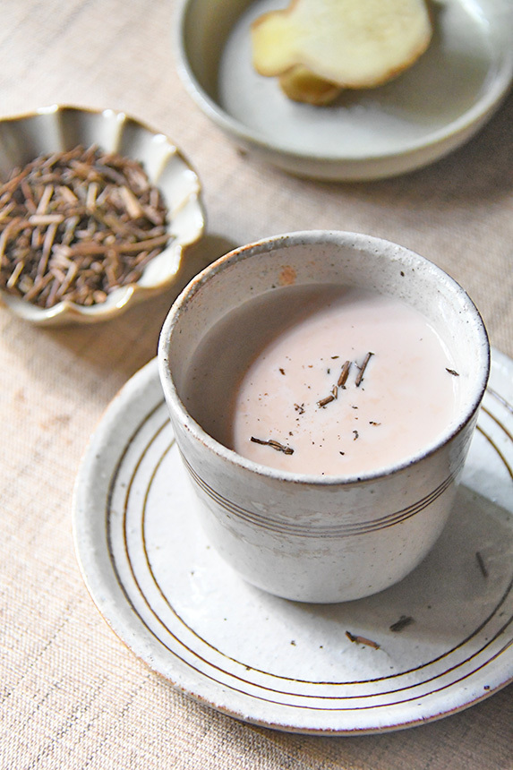 - くきほうじ茶のジンジャーミルクティー(茎ほうじ茶チャイ)