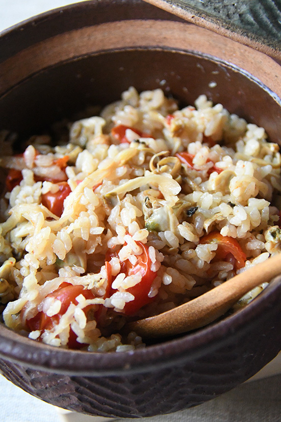 ミネラルや鉄分などを含み、疲労回復や美肌効果、貧血予防も期待される食材、あさりの水煮缶をまるごと使った旨みたっぷりの炊き込みご飯です。