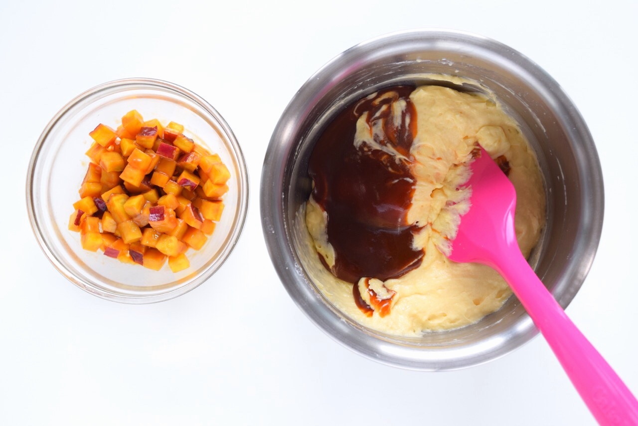 4のサツマイモ80gと残りのキャラメルソースを加えて均一に混ぜる。(残りのサツマイモ40gは仕上げの飾り用に使用)