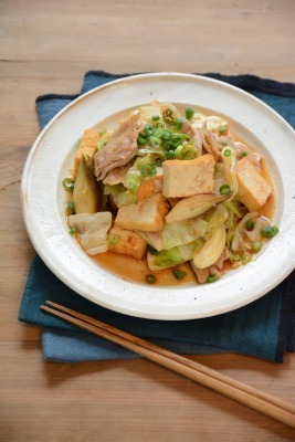 厚揚げとキャベツを加え、中火で1分半程炒める。