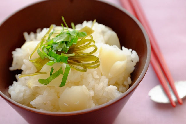 ホクホクしたゆり根の食感が楽しい炊き込みご飯です。だしをとるために入れる昆布も刻んで一緒にいただきます。