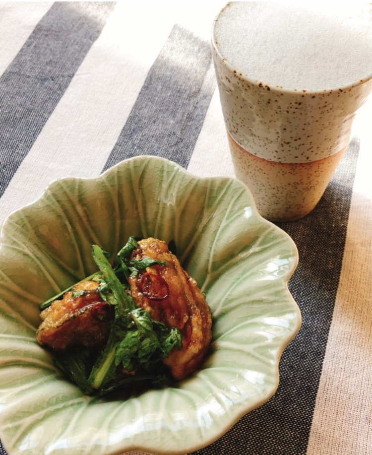 お酒のおつまみにも、おかずにも。春菊の風味がさっぱりさせてくれます。