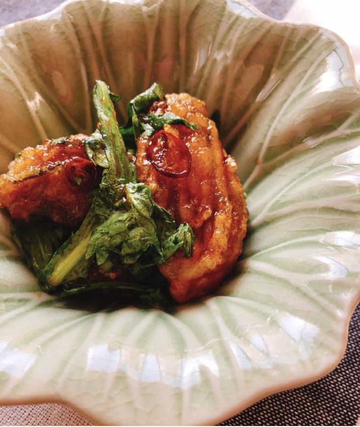 - たれが全体に絡めて粗熱が取れたら、器に盛る。