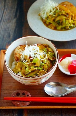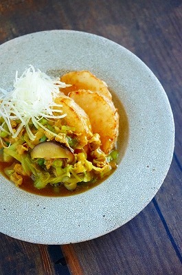 - ②に③のカレーあんをかけてお好みで白髪ねぎを添える。