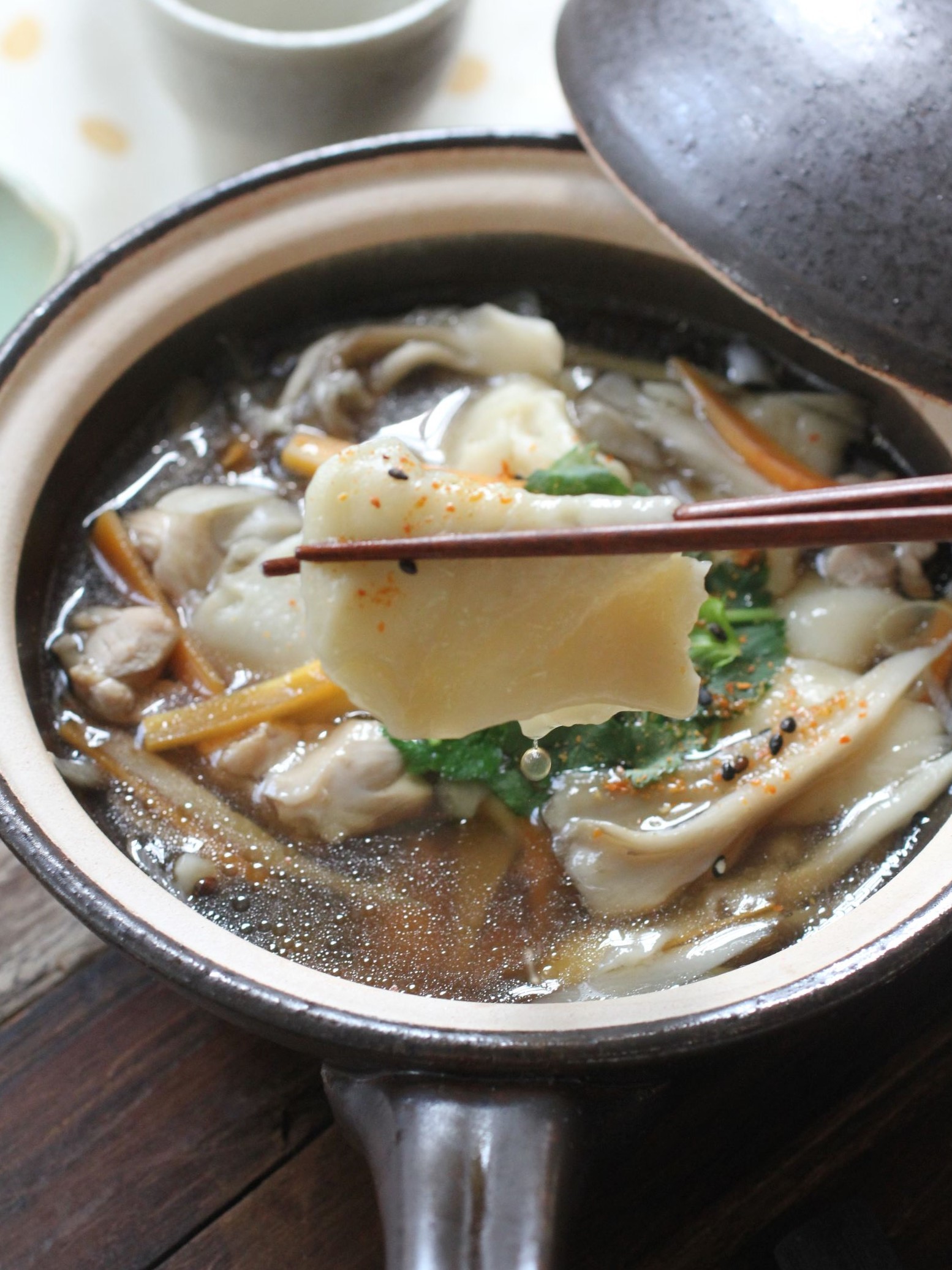 別鍋で生地を茹でるのは、出汁の濁りととろみを抑え透き通った出汁にするためです。4を省いて直接生地を鍋に入れると、時短になります。