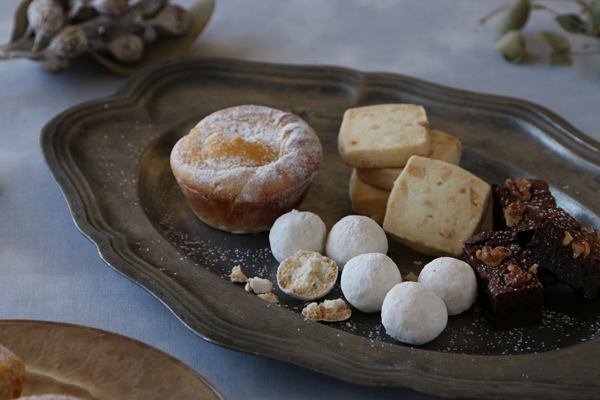 お菓子は市販のものを使用して、全体的にシックでアンティークな雰囲気が出るようにスタイリングしています。