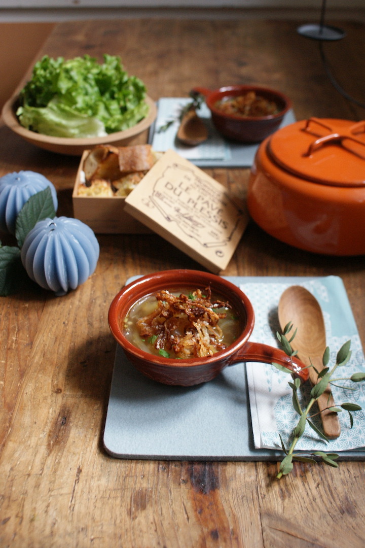 時短ながら、トロトロ食感と香ばしく揚げた2種の玉ねぎを味わうことのできるオニオンスープ
