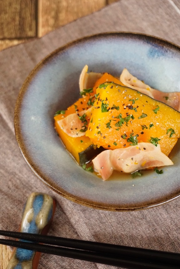 冬至に食べるかぼちゃ煮をコンソメとベーコンでちょっとだけ洋風に✨