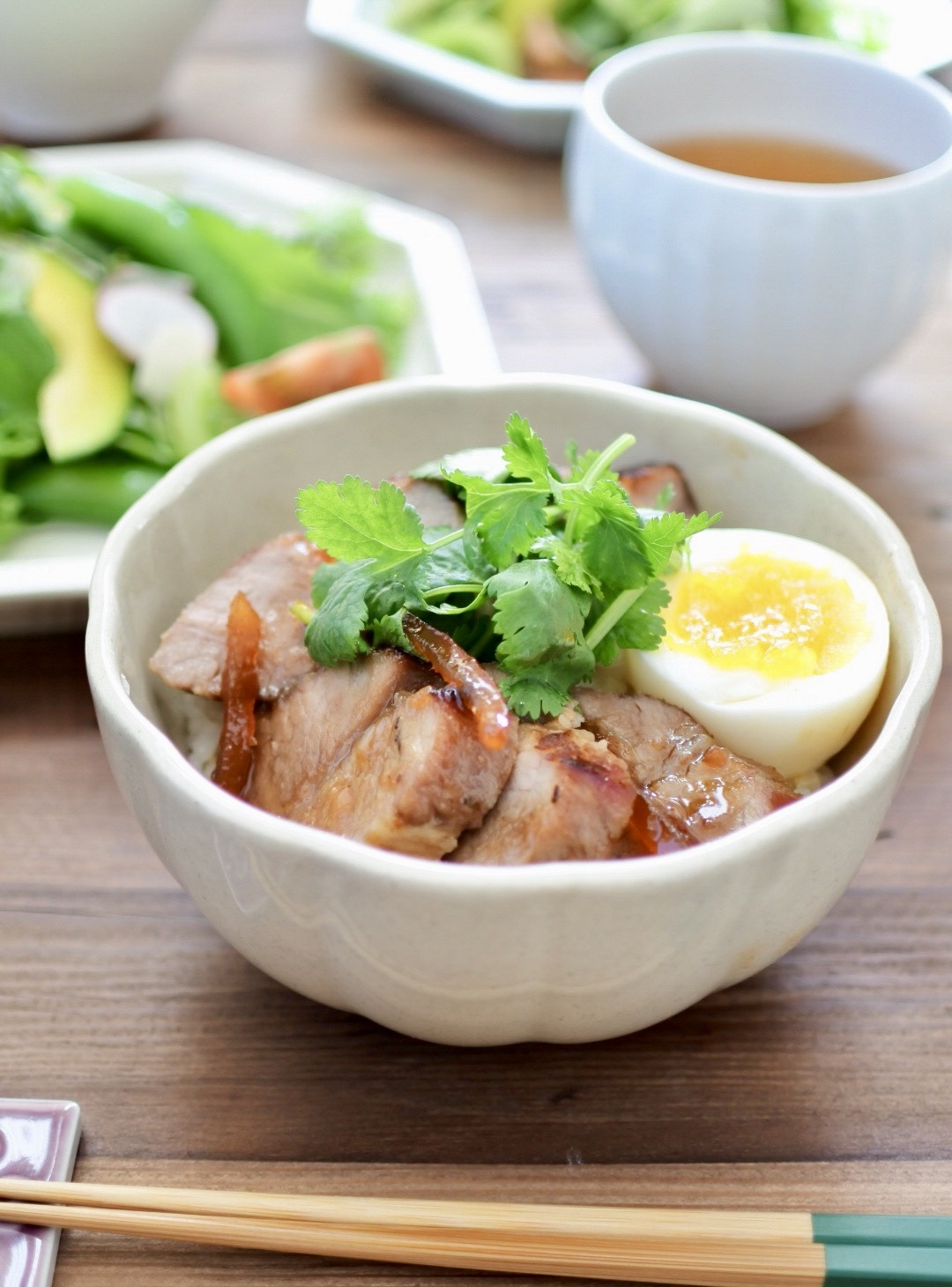 男子におすすめガッツリ飯に。マーマレードのさわやかな甘さと花椒とパクチーたっぷり乗せるので、女性も好きなお味です。