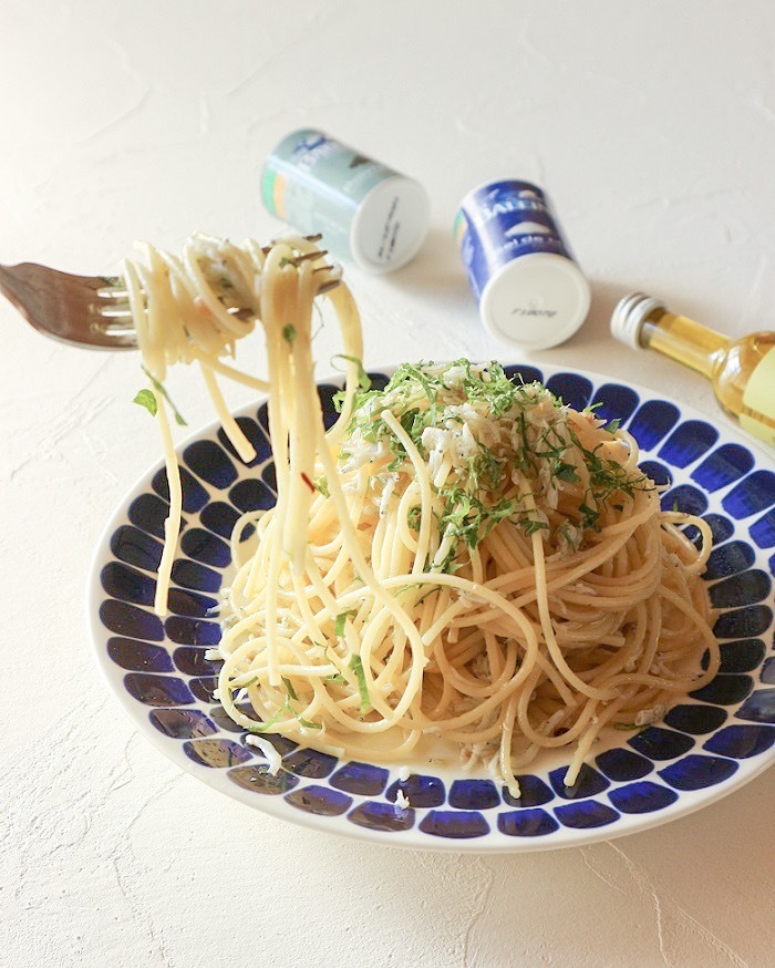 パスタと相性がよいしらすを使った手軽に作れるレシピです。しらすの濃厚な旨みと梅と大葉の爽やかさが味わえます。