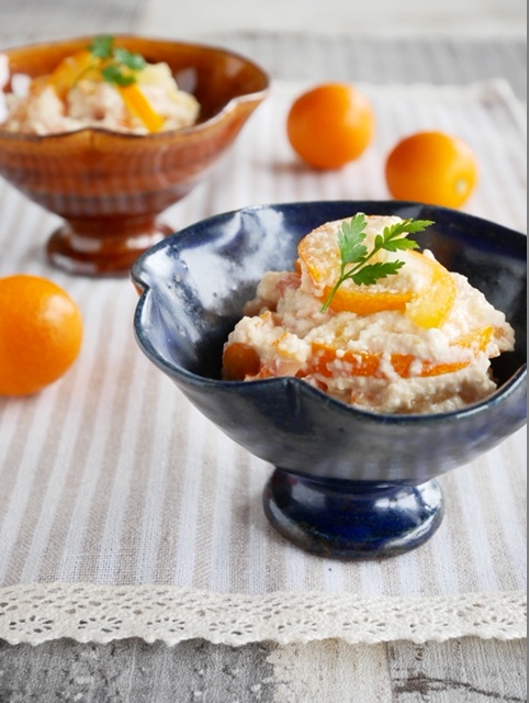 皮まで生で食べれるタイプの金柑を使用し、さわやかな1品に仕上げました。