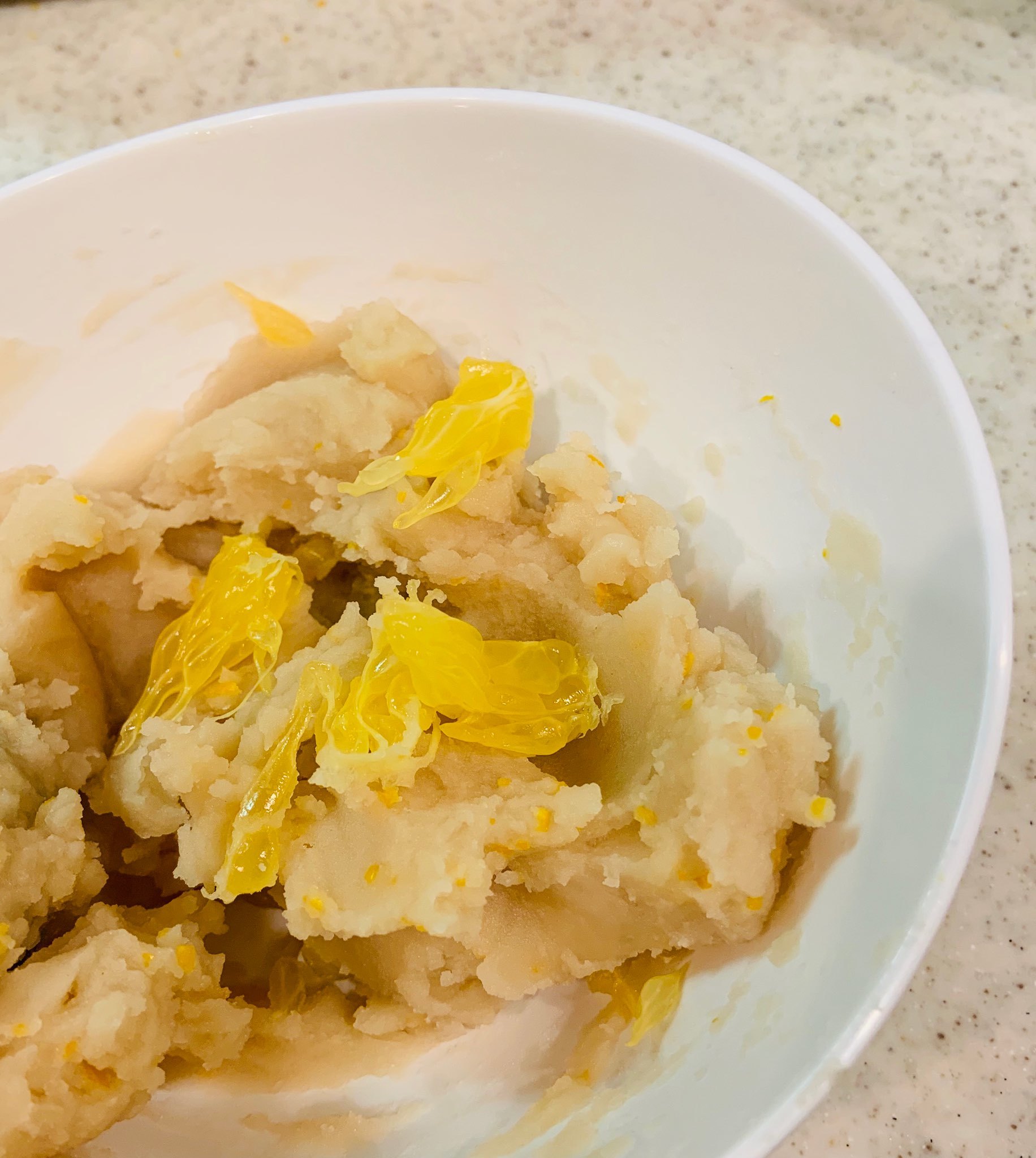 ボウルに白あんと崩した八朔の実2つ分を入れて軽く混ぜる