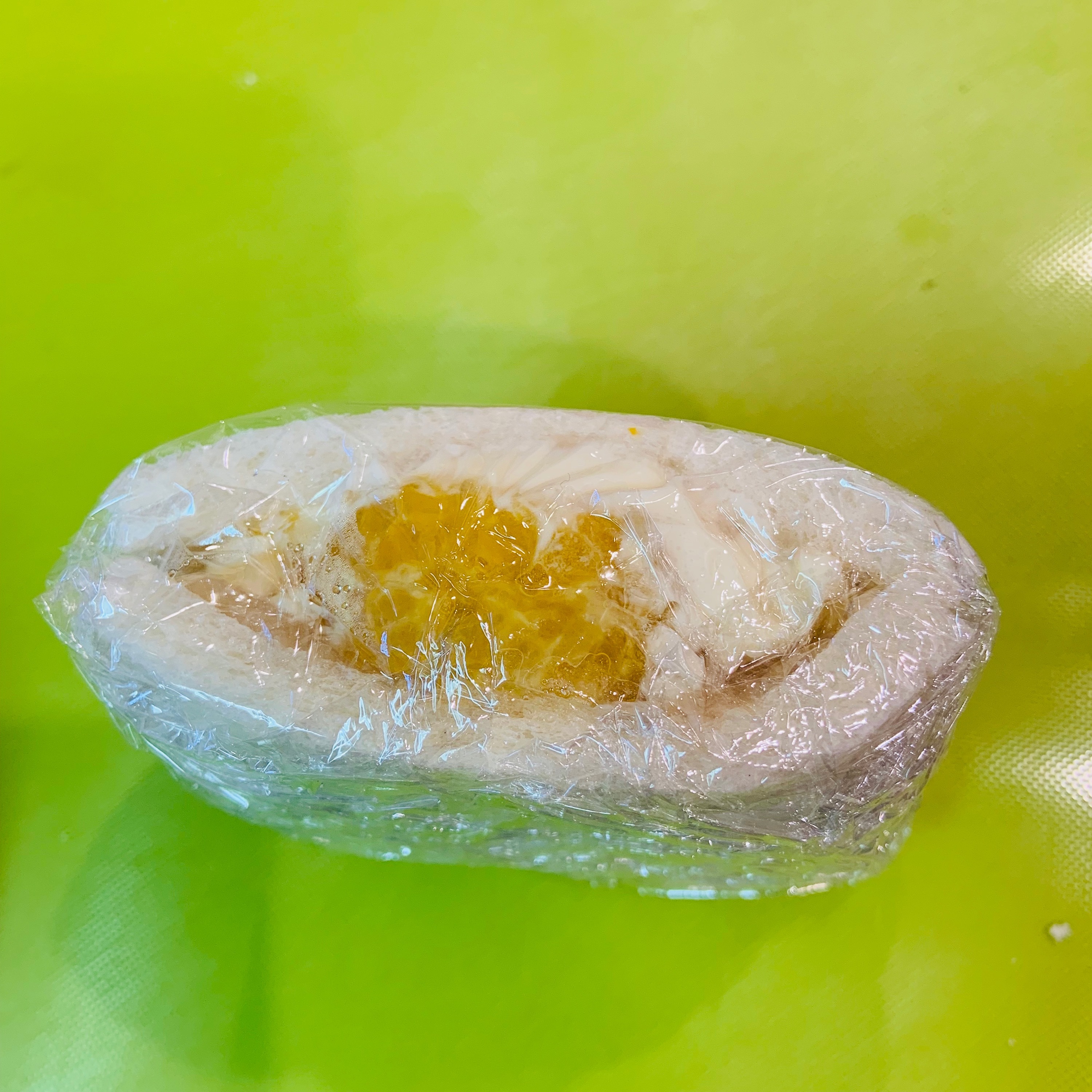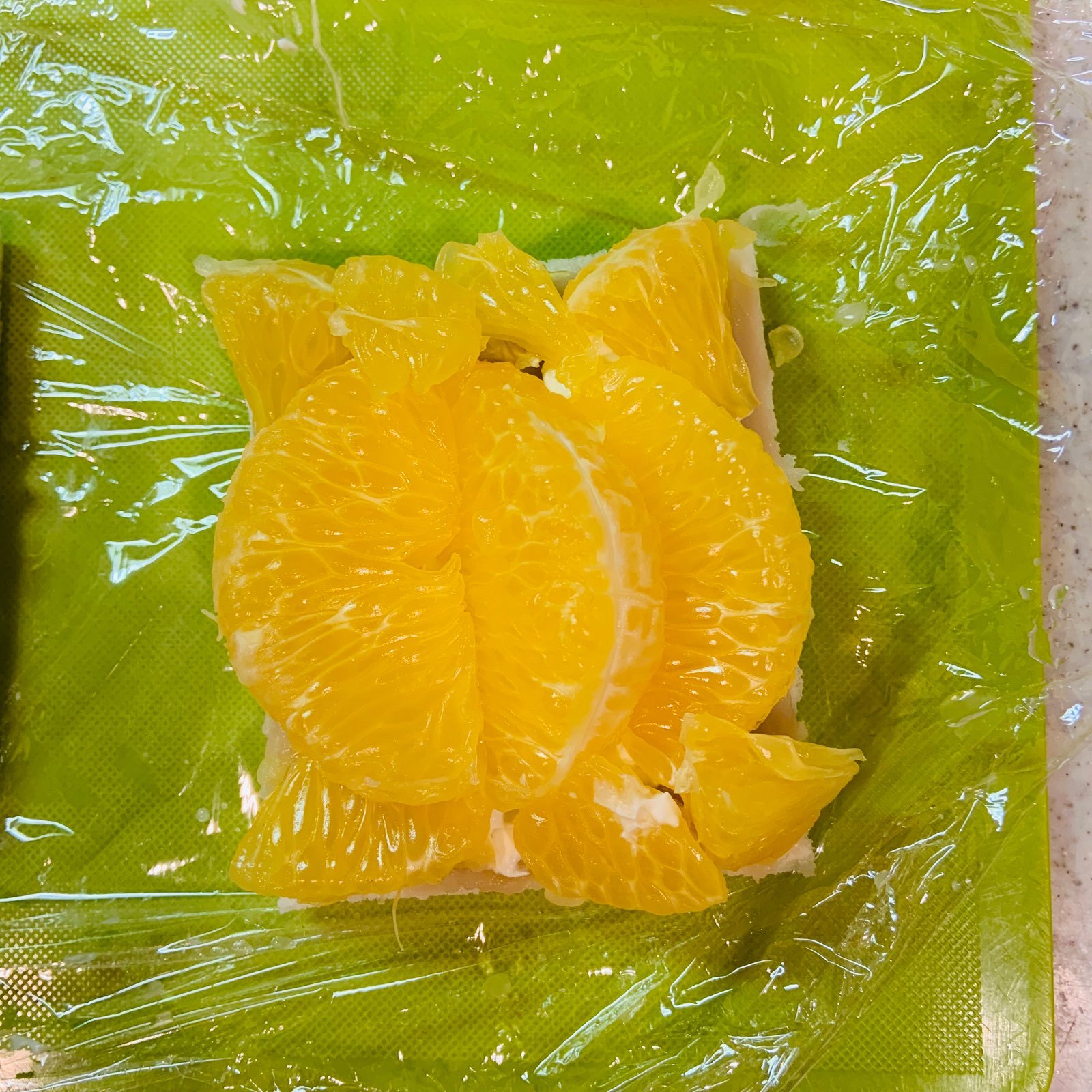 八朔は実が崩しやすく、汁が出にくいので扱いやすいです。多少実が崩れたり、パンに白あんとサワークリームがきれいに塗れなくても、ラップで覆い整えれば大丈夫です。冷やすことで形が整い切りやすくなります。また、味もなじみます。