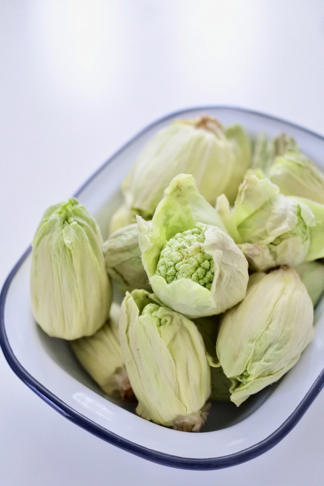 - ふきのとうを粗くみじん切りにし、アクがあるので切ったそばから水にさらしておく。