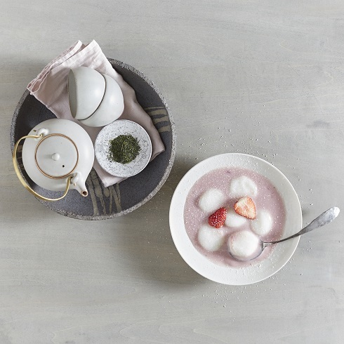 温かいおやつを温かい飲み物と一緒に楽しむ雰囲気を表現しました。