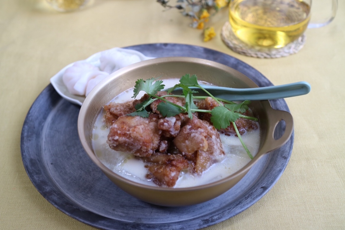 台湾料理のパイグースータンを豆乳を使ってアレンジしたレシピ。スパイスの効いた鶏肉とまろやかな豆乳スープの相性が良く、何度でも食べたくなるクセになる味です。