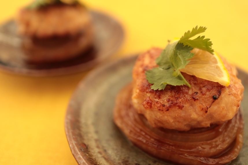 玉ねぎでふんわりタイ風つくね 玉ねぎステーキ添え