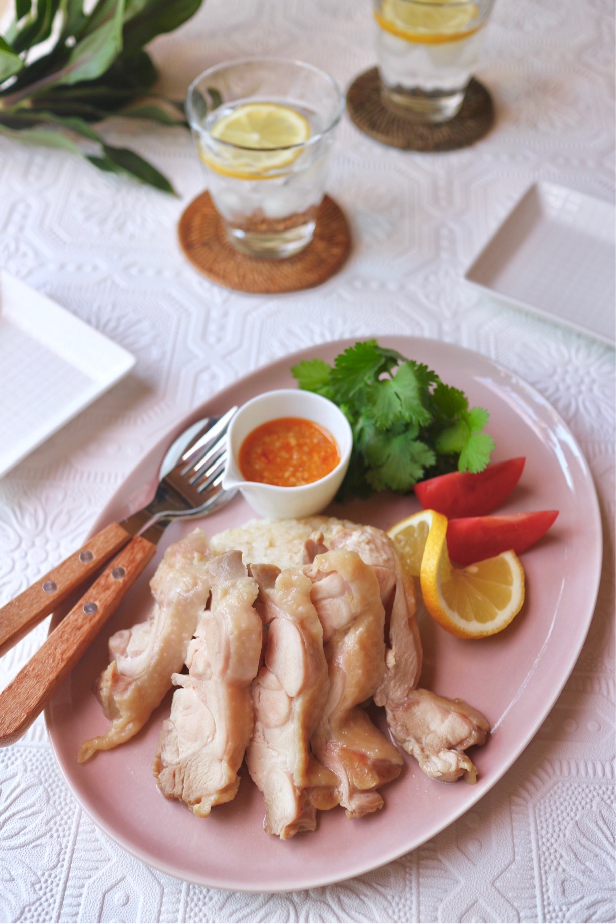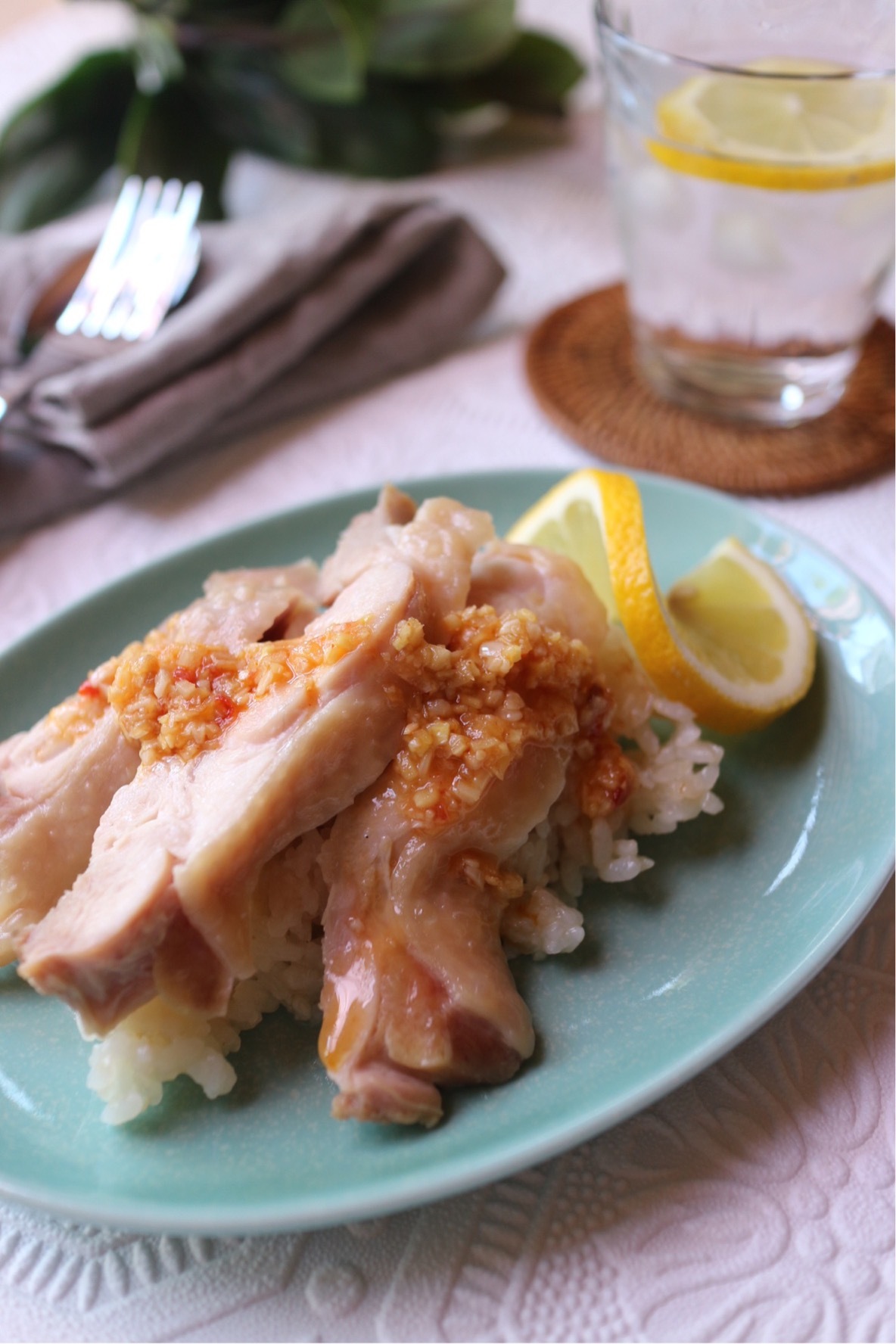 すし酢でさっぱりトロトロ鶏のカオマンガイ