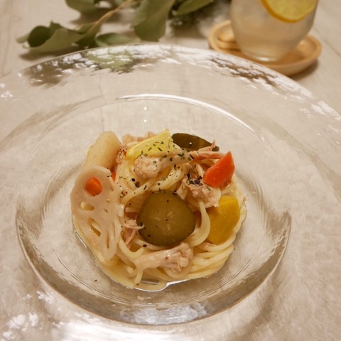 混ぜるだけ!ピクルスとツナの冷製パスタ