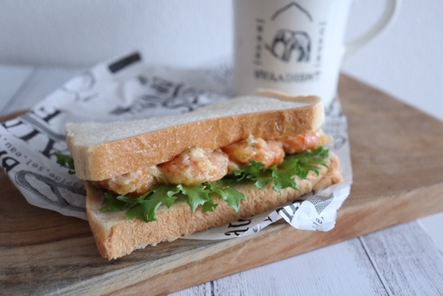 ディルが爽やかに香るマヨネーズを絡めた海老マヨ。サンドイッチにしても美味しいです。