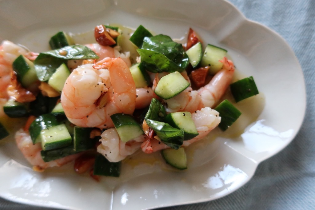 エビのうまみと爽やかなバジルの風味がマッチしたマリネです。 きゅうりやアーモンドを加えて食感も楽しめます。 フレッシュバジルが旬な初夏にぴったりのメニューです。