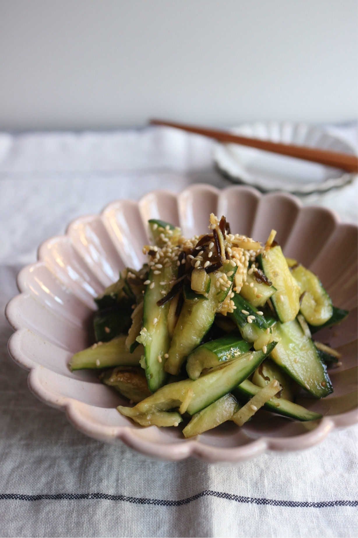 塩昆布で簡単混ぜるだけ!昆布の旨味にしょうがとすし酢がとてもクセになる美味しさです。箸休めやおつまみにも◎ もう一品欲しいなぁという時にすぐ作れちゃう副菜ですよ。