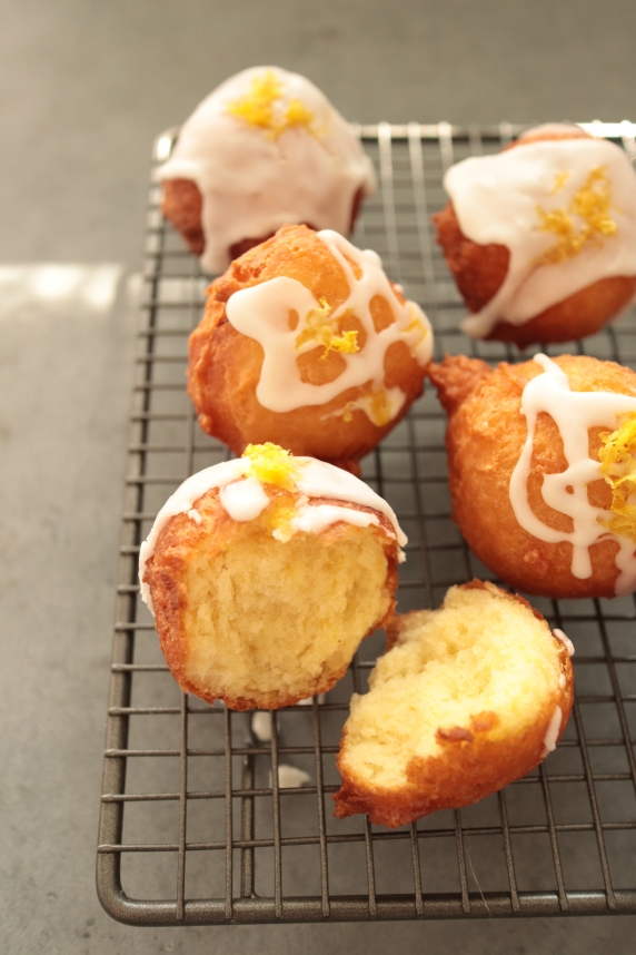 - 揚げ油を中温(170℃~175℃)に温め、大きめのスプーンを揚げ油にサッと通してから生地を1杯ずつすくい揚げ油に落とし、途中くるくると回しながら、表面がきつね色になるまで6~7分程揚げ、粗熱をとる。