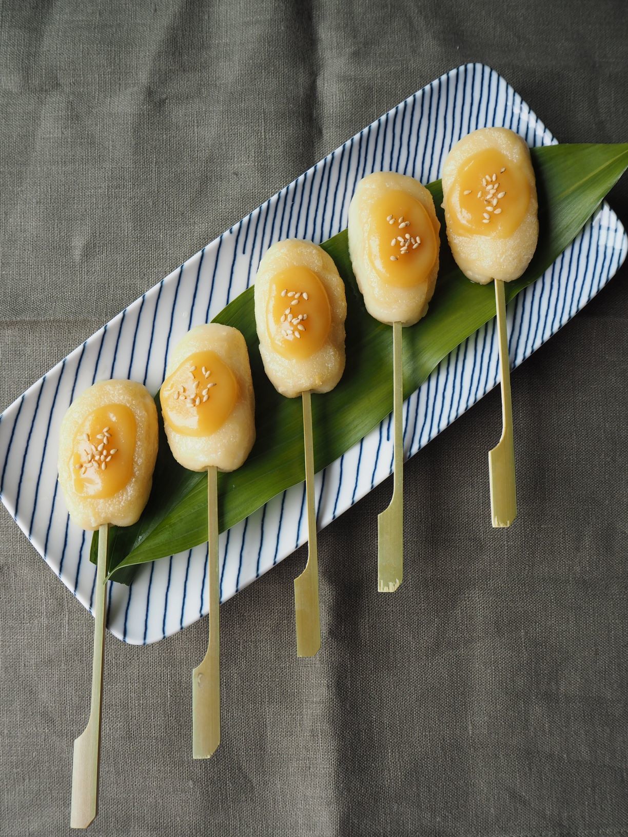 - 白玉田楽/Sticky rice flour balls with sweet miso paste