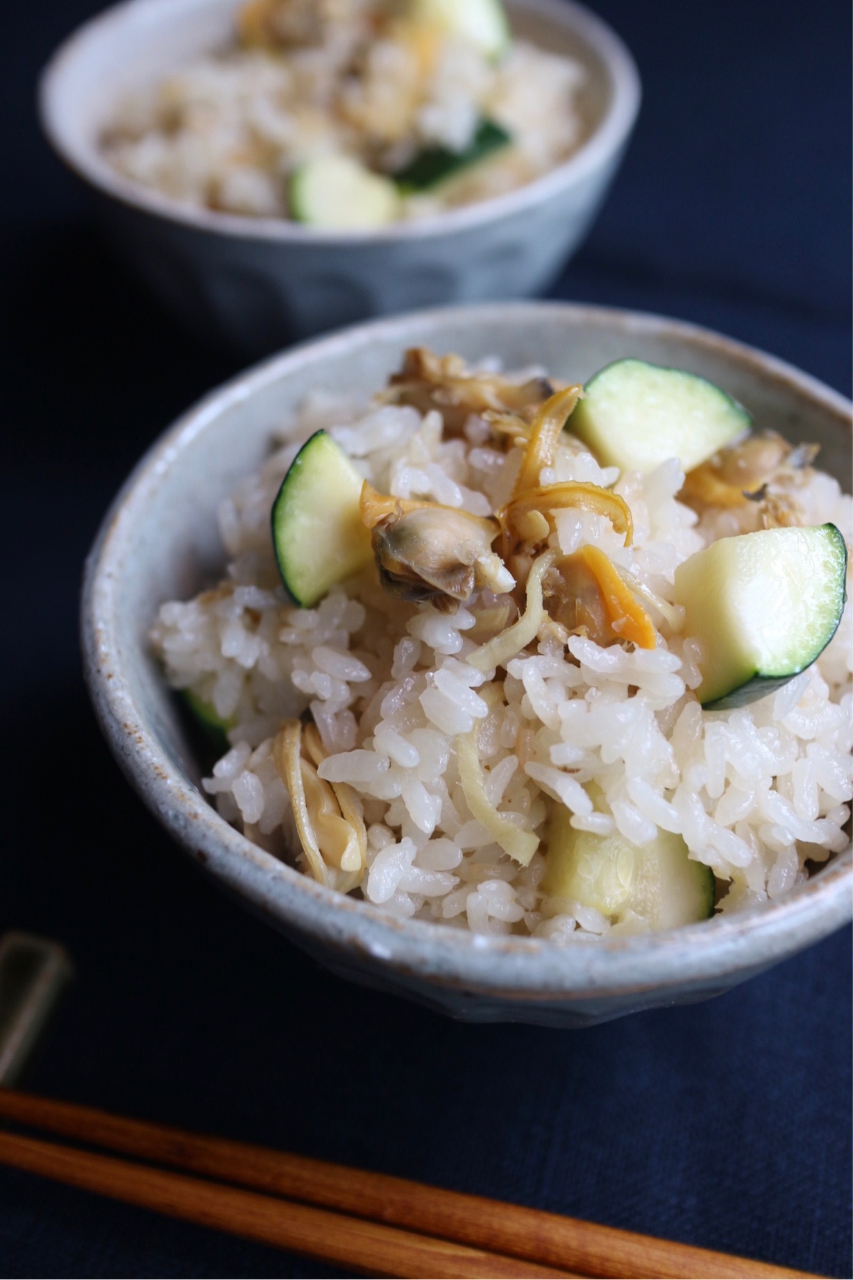 あさりのダシがよくしみ込んだご飯と食感のよいズッキーニがよく合います。ズッキーニは食感を残すために炊きあがったあとに入れて、10分程度余熱でじっくり火を通すのがポイント。そうすることにより、甘みも引き出て歯ごたえのある食感が楽しめます。また、白だしを使っているので、簡単に炊き込みご飯の仕込みが出来ちゃいます。